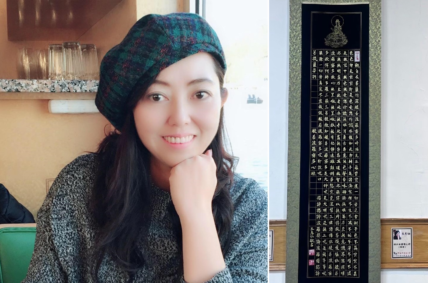 (左) 藝術家 王惠仙 (右)作品 :「般若波羅蜜心經」