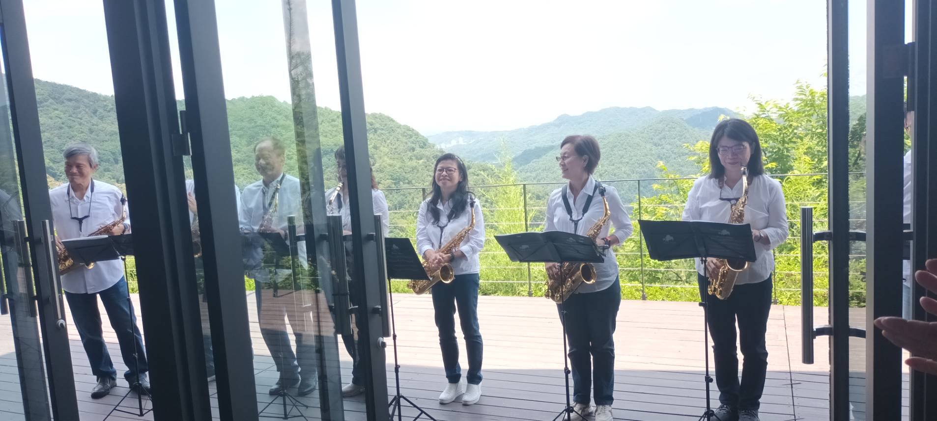 新北p薩風樂團校長群的悠揚演奏下,100餘位嘉賓與慈善藝術家共同為義賣活動揭開序幕