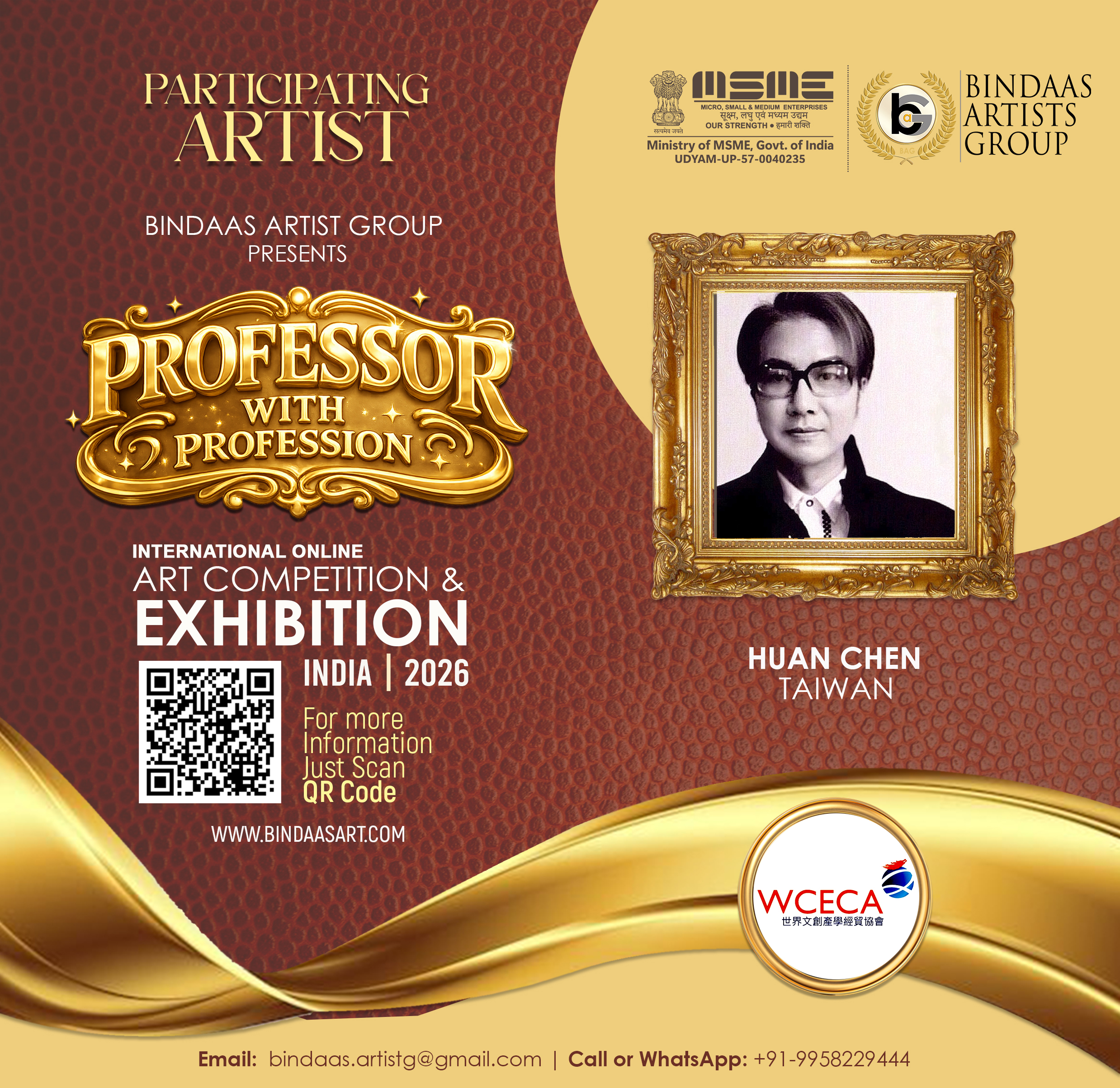 國際藝壇矚目,一場專為全球「學術界藝術家與教育工作者」打造的國際專屬盛事——“Professor With Profession” International Art Competition & Online Exhibition(「藝境.職心」2026印度國際藝術競賽暨線上展),於4月4日正式公佈獲獎名單,陳歡博士(Dr. Huan Chen)喜獲印度藝術界最具權威指標性國際博士金牌獎 Raja Ravi Varma Awards (拉賈·拉維·瓦爾瑪獎) ,捷報傳回台灣!
