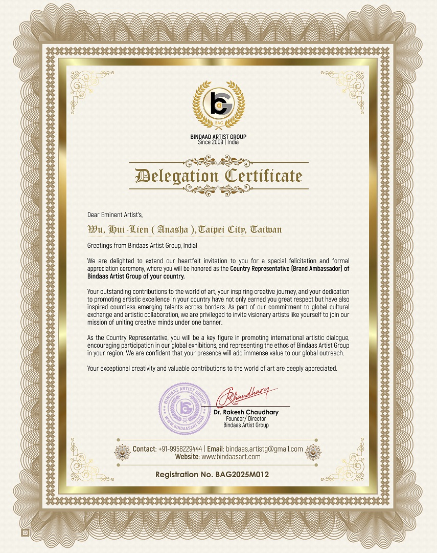 Bindaas Artist Group「國家代表暨品牌大使」AMBESSDOR Wu, Hui-Lien ( Anasha ) 吳慧蓮及其作品