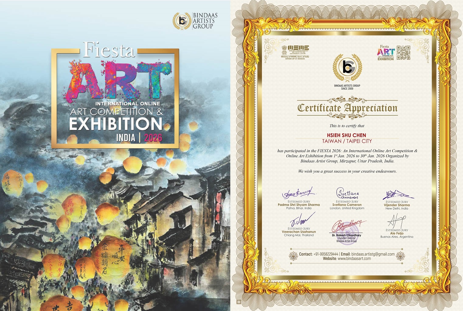 2026 印度「國際慶典藝術大賽暨線上展覽」金獎