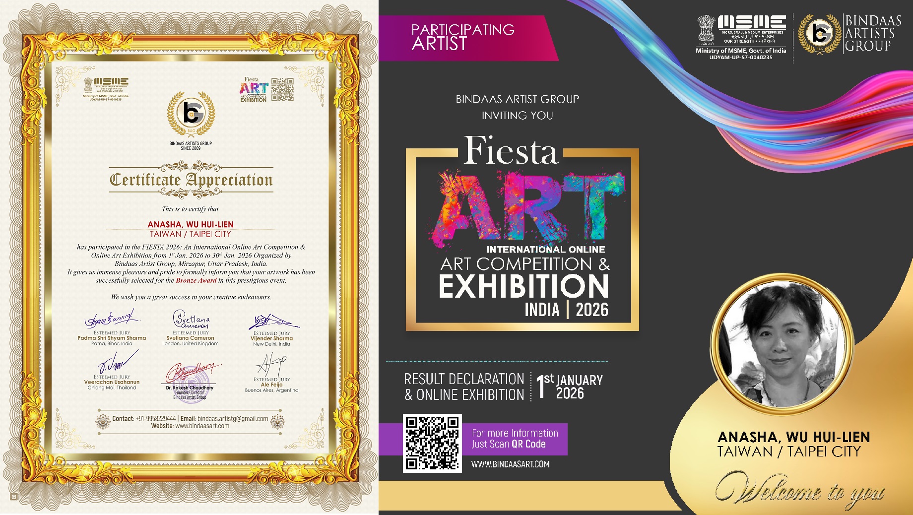 台灣當代藝術家吳慧蓮 Wu, Hui-Lien (Anasha) 2026 Fiesta Art入選銅牌獎